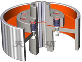 彈性套柱銷聯軸器結構比較簡單,制造容易,不用潤滑,不需要與金屬硫化粘結,更換彈性套方便,不用移動半聯軸器,具有一定補償兩軸相對偏移和減振緩沖性能。彈性套工作是受壓縮變形,由于彈性套的厚度較薄,體積小,彈性變形有限,所以,彈性套柱銷聯軸器雖可補償軸線位移和彈性,但軸線位移許用補償量較少,彈性較弱。彈性套柱銷聯軸器是依靠柱銷組的鎖緊力而產生于接觸面的摩擦力矩,并壓縮橡膠彈性套來傳遞轉矩。適用于安裝底座剛性好、對中精度較高、沖擊載荷不大、對減振要求不高的中小功率軸系傳動。